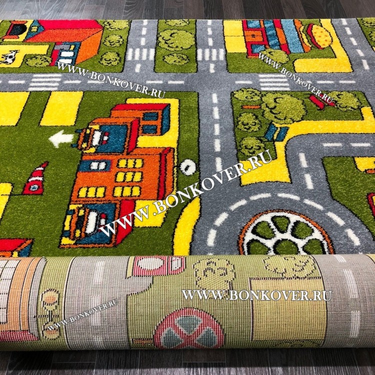 Напольные покрытия для детской комнаты - это всегда яркие цвета, интересные рисунки. Дизайн новинки станет отличным решением для оформления комнаты, где живет ваш малыш. Полотно ковра украшает яркий и занимательный рисунок. Использование износостойких материалов позволило создать Детский Ковер Город 02 Зеленый с мягким, приятным при ходьбе ворсом, который обладает антистатическими и гипоаллергенными свойствами.