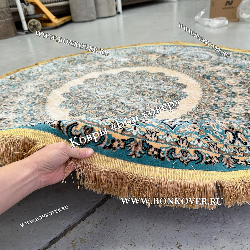 Восточный Ковер Для Гостиной Медальон Дизайн 28747 круг станет привлекательным дополнением интерьера, оформленного в современном или классическом стиле. Мягкое, но прочное, ковровое изделие обеспечивает тепло- и шумоизоляцию, отличается длительным сроком эксплуатации, надежностью, экологичностью и высокой износостойкостью, является отличной защитой от повышенной влажности в помещении и утеплителем для холодного пола. Благодаря качеству материалов, ковер не деформируется, сохраняет форму под тяжестью предметов мебели. За его поверхностью легко ухаживать.